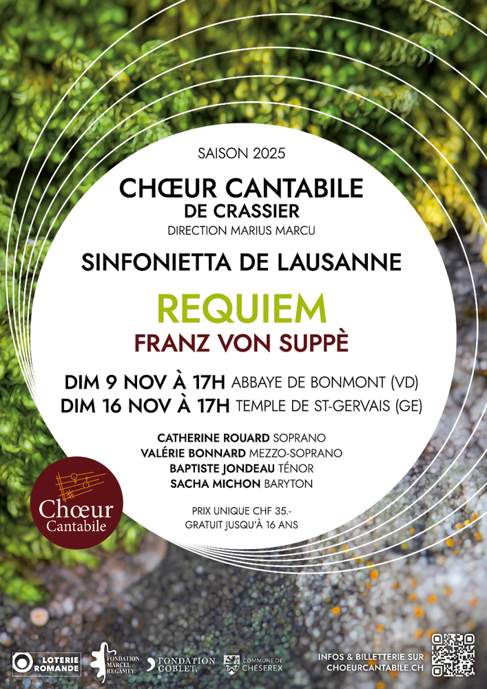 - Dimanche 9 novembre à 17h à l'Abbaye de Bonmont (Chéserex)